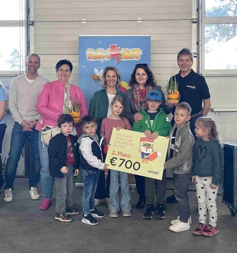Hurra!!! Unser Kindergarten hat den 2. Platz gewonnen, welcher mit 700 € dotiert ist und uns zur Anschaffung von Spielmaterial zur Verfügung steht. Weiters bekam jedes Kind ein T-Shirt als Dankeschön für seine Mühe.
